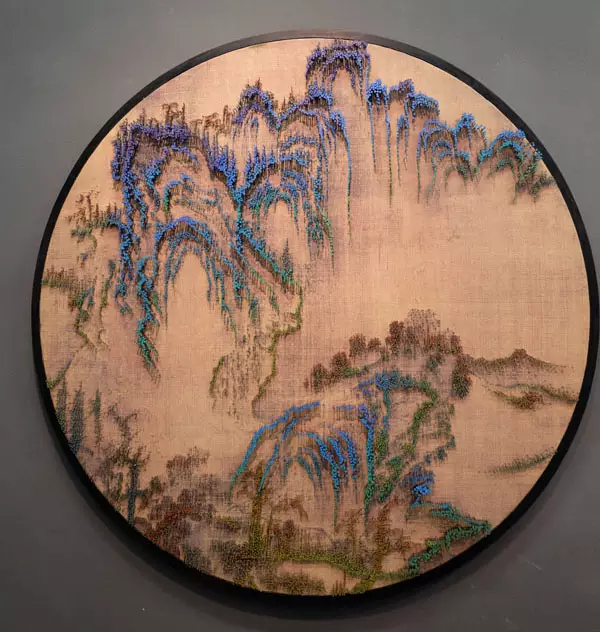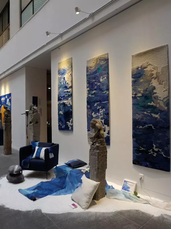 单夏丽的《隐之山水》以缓压色彩理论为依据,是对色彩与材质减压纺织品设计的一种尝试。