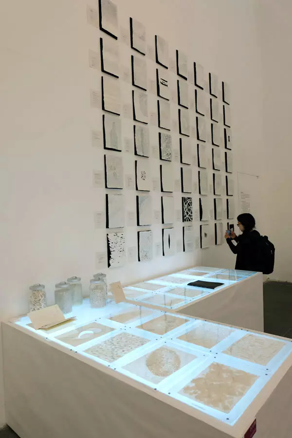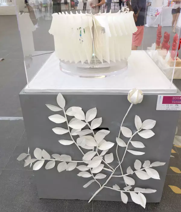 杨昶贺的《我“吃”了一本书》是一件纸纤维作品,作者通过变化的形状、肌理以及透明度呈现了不同的纸纤维语言,表达了对于阅读与信息的独特思考。