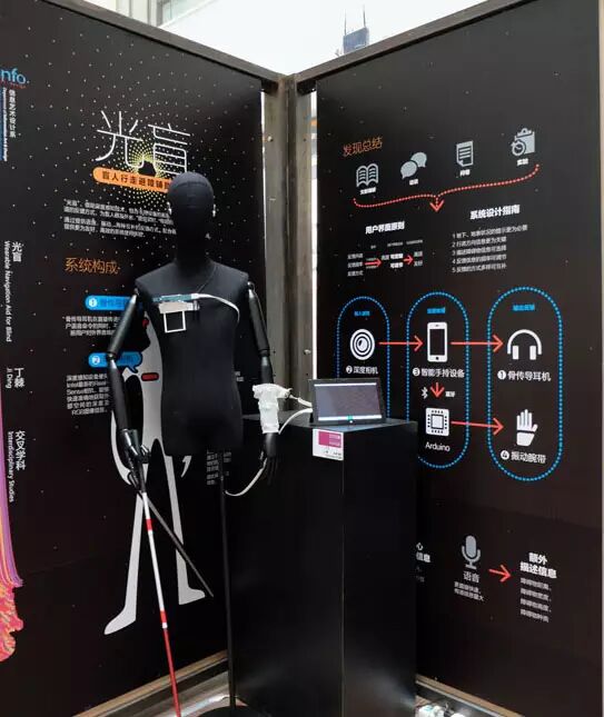 丁棘的《光盲》是一个针对盲人的行走避障辅助系统,它借助深度感知技术,结合手持设备,通过语音、震动的反馈和定制界面,为盲人外出提供有效辅助。