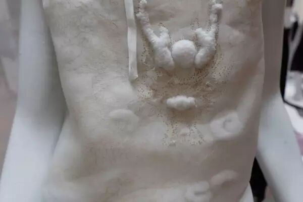 另外,染服系的毕设作品还包括对装饰元素(如蕾丝在男装中的应用)、民族元素、材质的表现力、功能性服饰(防紫外线服饰)等领域的探索。