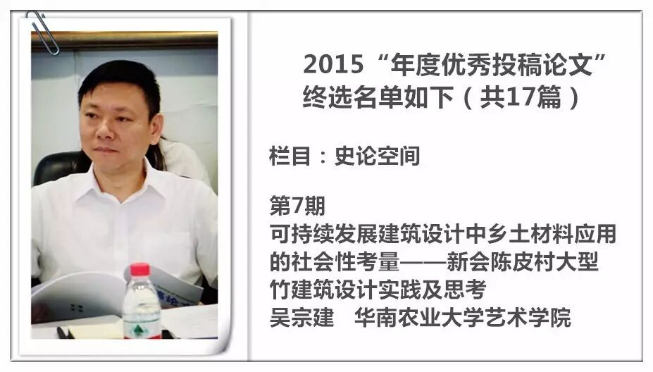 来自华南农业大学的吴宗建介绍,文章的内容是他做的一个案例。在可持续发展这种案例中,以前主要注重环保节能的问题,从环境的角度去思考,而他则是从可持续发展的另外一些方面,比如社会性、经济性加以考虑。在实践过程中,他也是想重点在这方面寻找突破,争取做到不仅可持续,而且业主一定可以赚到钱,还要促进当地的就业。他坦言,自己没有史论专业的老师写得那么好,但是一边做实践,一边做教学,一边坚持写作。他认为,不管做得怎么样,一定要多总结,多进行传播与交流。